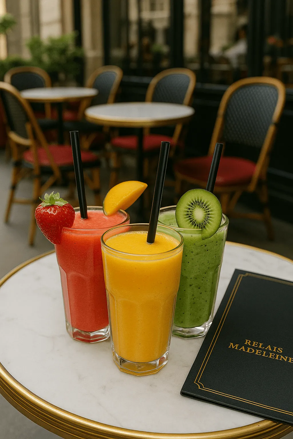 Au Relais Madeleine, les smoothies sont bien plus qu’une simple boisson : ce sont de véritables moments de fraîcheur et de plaisir. Préparés chaque jour avec des fruits soigneusement sélectionnés, ils mêlent authenticité, équilibre et gourmandise.